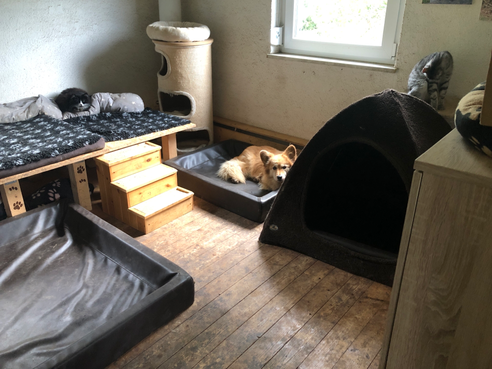 Ich habe keine Zwinger oder extra Zimmer, alle Hunde leben ganz normal mit uns im Haus,